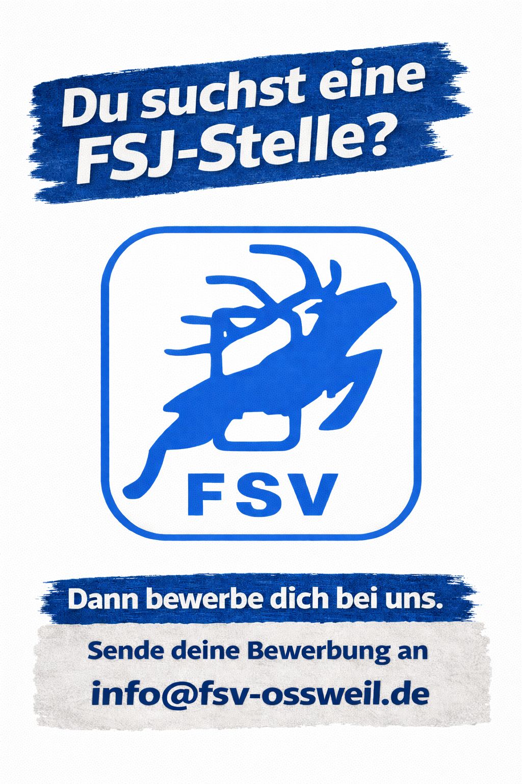 Du suchst eine FSJ-Stelle? Dann bewerbe dich jetzt bei uns! Seit 2017 ist der FSV ist nun anerkannte Einsatzstelle für ein freiwilliges, soziales Jahr (FSJ) im Bereich Sport. Interessierte können sich mit sofortiger Wirkung für die noch zu besetzende Stelle (2026 / 2027) beim FSV Oßweil 1924 e.V. bewerben (per E-Mail an info@fsv-ossweil.de). Bitte beachtet hierbei den Einsendeschluss für Eure Bewerbung... Read More