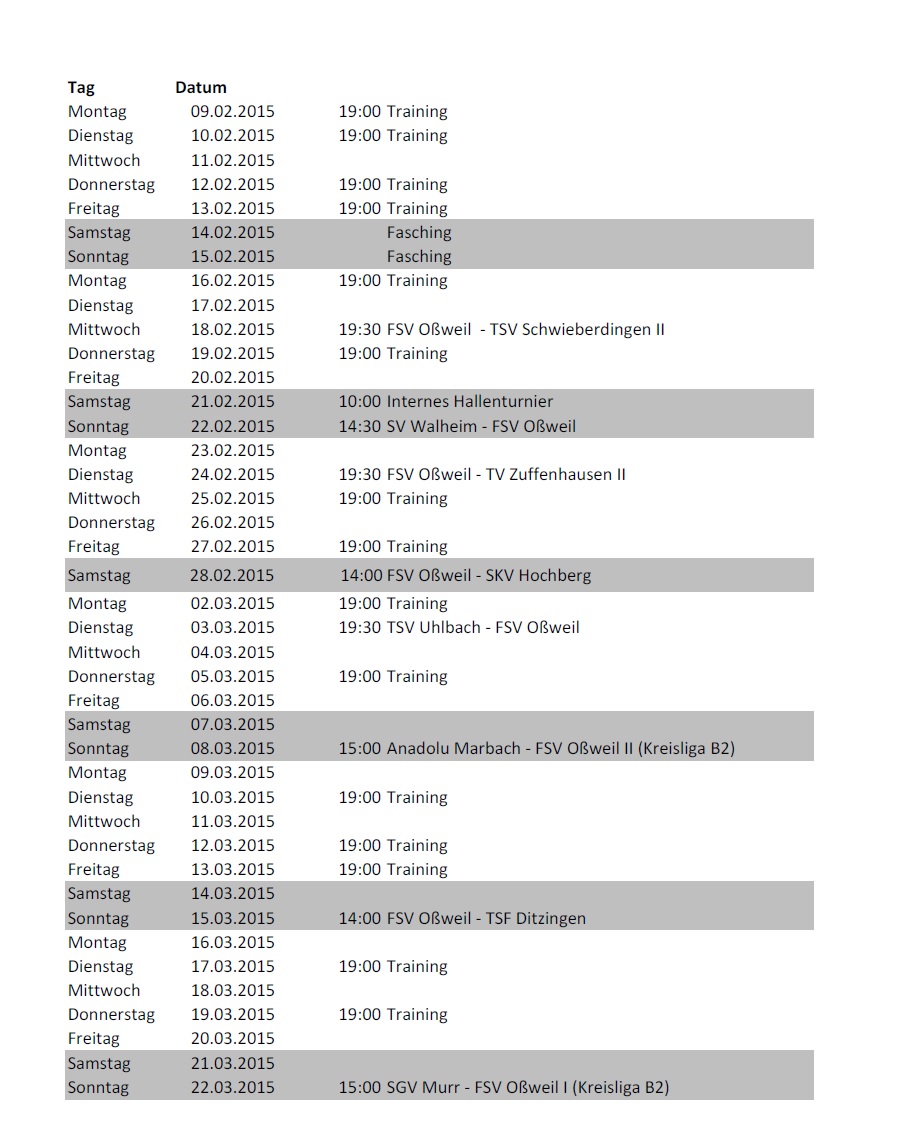 Am morgigen Montag, den 09.02.2015 starten unsere beiden aktiven Herrenmannschaften in die Vorbereitung für die ausstehenden Spiele der Kreisliga B1 und B2 der Saison 2014/2015.